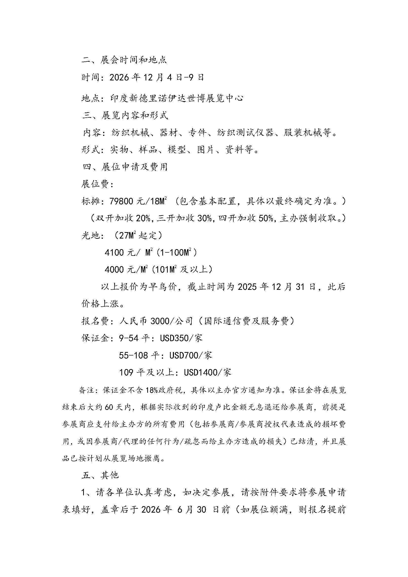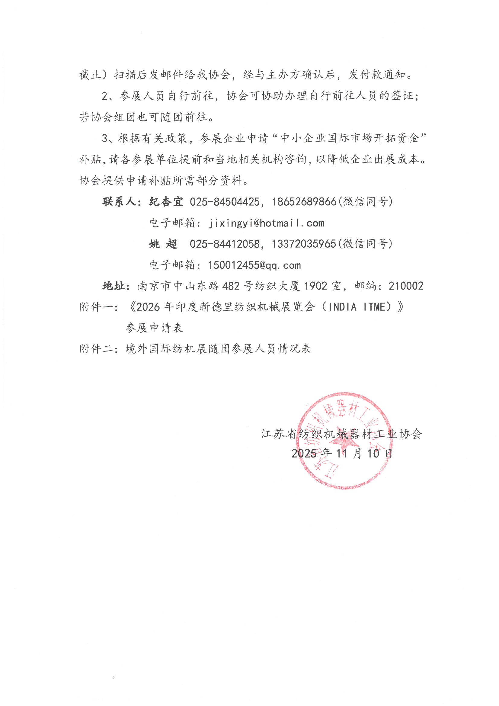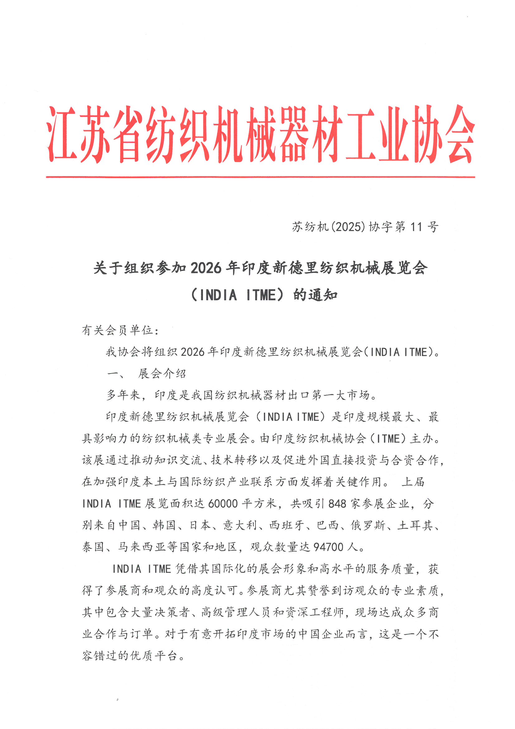 关于组织参加2026年印度新德里纺织机械展会(INDIA ITME)的通知)